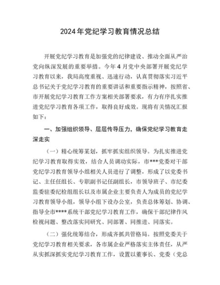 / 【七哥公文】2024年:2024年党纪学习教育情况总结+更多免费公文+VX:QiGeGongWen2024