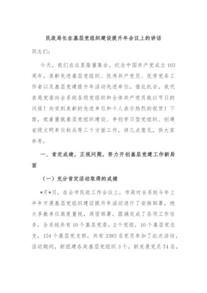 / 【七哥公文】2024年:民政局长在基层党组织建设提升年会议上的讲话+更多免费公文+VX:QiGeGongWen2024