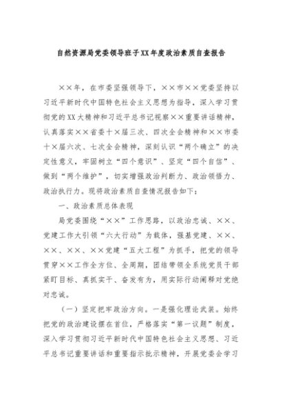 / 【七哥公文】2024年:自然资源局党委领导班子XX年度政治素质自查报告+更多免费公文+VX:QiGeGongWen2024