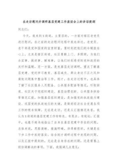 / 【七哥公文】2024年:在走访慰问并调研基层党建工作座谈会上的讲话提纲+更多免费公文+VX:QiGeGongWen2024