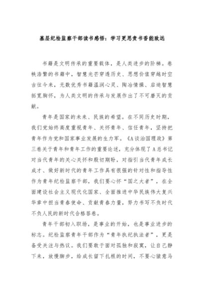 【七哥公文】2024年:基层纪检监察干部读书感悟:学习更思责书香能致远+更多免费公文+VX:QiGeGongWen2024