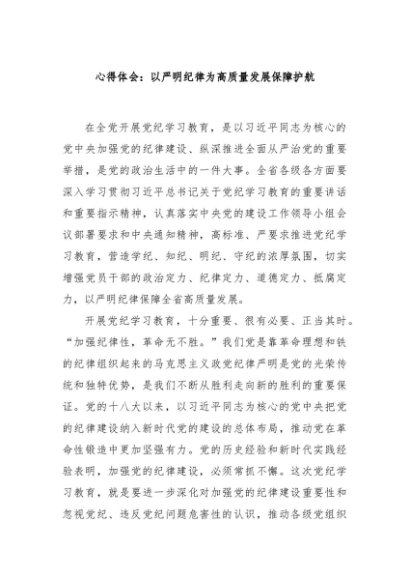 / 【七哥公文】2024年:心得体会:以严明纪律为高质量发展保障护航+更多免费公文+VX:QiGeGongWen2024