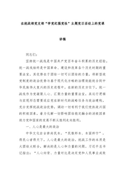 【七哥公文】2024年:在统战部党支部“学党纪强党性”主题党日活动上的党课讲稿+更多免费公文+VX:QiGeGongWen2024