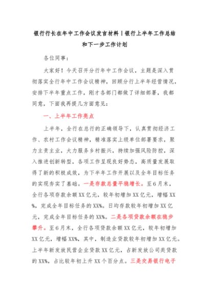 / 【七哥公文】2024年:银行上半年工作总结和下一步工作计划(框架)+更多免费公文+VX:QiGeGongWen2024