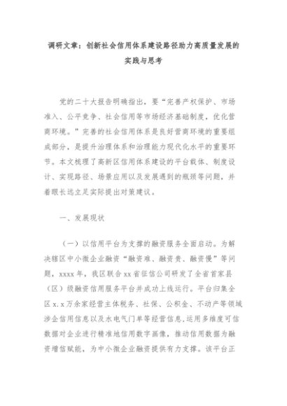 【七哥公文】2024年:调研文章:创新社会信用体系建设路径助力高质量发展的实践与思考+更多免费公文+VX:QiGeGongWen2024