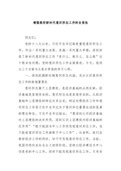 【七哥公文】2024年:增强做好新时代意识形态工作的自觉性+更多免费公文+VX:QiGeGongWen2024