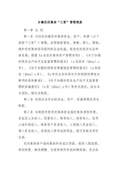【七哥公文】2024年:乡镇农村集体“三资”管理制度+更多免费公文+VX:QiGeGongWen2024