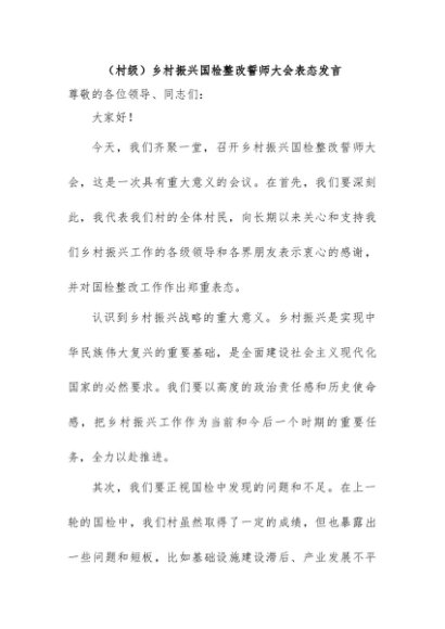 / 【七哥公文】2024年:乡村振兴国检整改誓师大会表态发言+更多免费公文+VX:QiGeGongWen2024