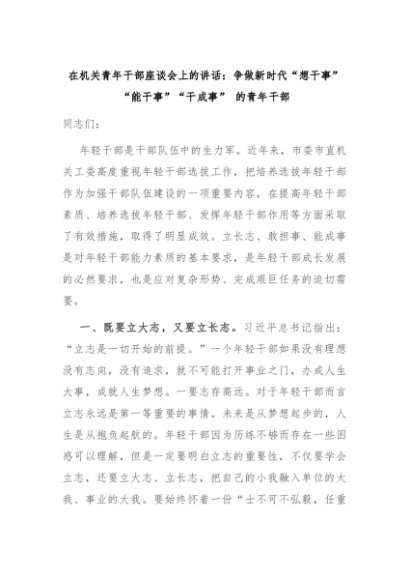 【七哥公文】2024年:在机关青年干部座谈会上的讲话:争做新时代“想干事”“能干事”“干成事” 的青年干部+更多免费公文+VX:QiGeGongWen2024