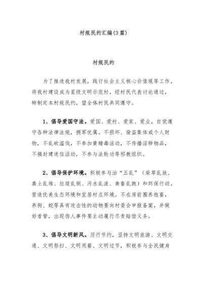 / 【七哥公文】2024年:(3篇)村规民约汇编+更多免费公文+VX:QiGeGongWen2024