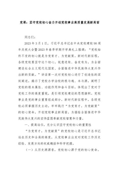 【七哥公文】2024年:党课:坚守党校初心奋力开创党校事业高质量发展新局面+更多免费公文+VX:QiGeGongWen2024