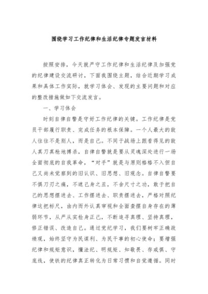 【七哥公文】2024年:围绕学习工作纪律和生活纪律专题发言材料+更多免费公文+VX:QiGeGongWen2024