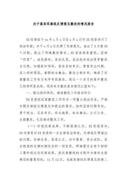 / 【七哥公文】2024年:关于落实巡察组反馈意见整改的情况报告+更多免费公文+VX:QiGeGongWen2024