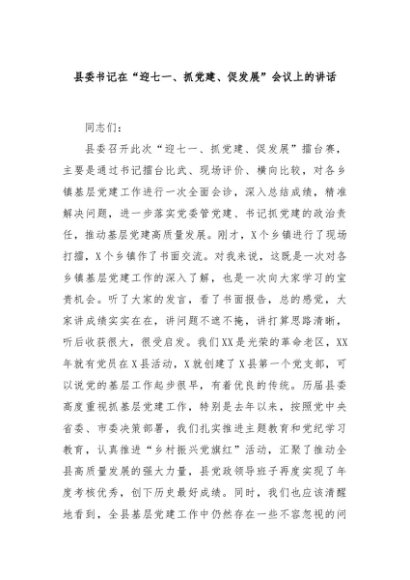 / 【七哥公文】2024年:县委书记在“迎七一、抓党建、促发展”会议上的讲话+更多免费公文+VX:QiGeGongWen2024