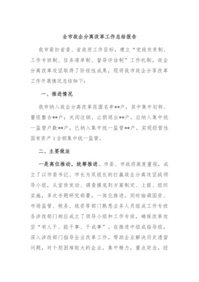 / 【七哥公文】2024年:全市政企分离改革工作总结报告+更多免费公文+VX:QiGeGongWen2024