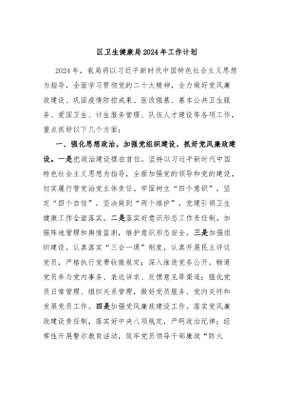 / 【七哥公文】2024年:区卫生健康局2024年工作计划+更多免费公文+VX:QiGeGongWen2024