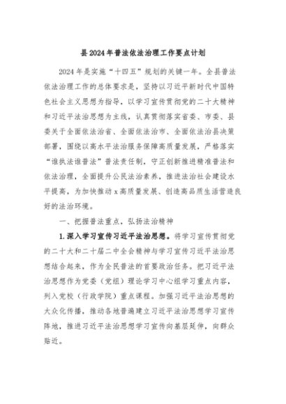 / 【七哥公文】2024年:县2024年普法依法治理工作要点计划+更多免费公文+VX:QiGeGongWen2024