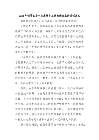 【七哥公文】2024年:2024年领导在全市志愿服务工作推进会上的讲话范文+更多免费公文+VX:QiGeGongWen2024