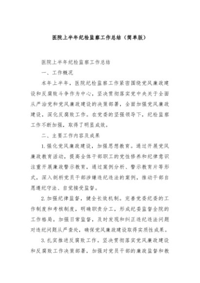 / 【七哥公文】2024年:医院上半年纪检监察工作总结(简单版)+更多免费公文+VX:QiGeGongWen2024