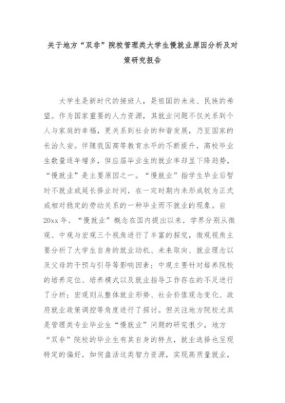 【七哥公文】2024年:关于地方“双非”院校管理类大学生慢就业原因分析及对策研究报告+更多免费公文+VX:QiGeGongWen2024