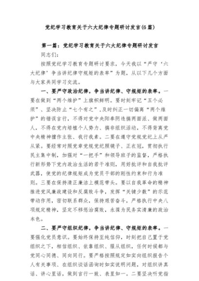 / 【七哥公文】2024年:(6篇)党纪学习教育关于六大纪律专题研讨发言+更多免费公文+VX:QiGeGongWen2024
