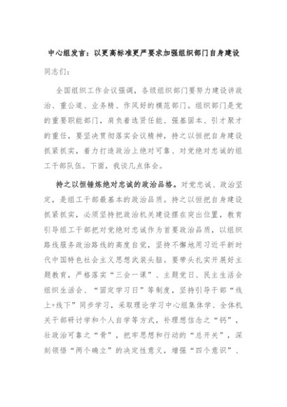 【七哥公文】2024年:中心组发言:以更高标准更严要求加强组织部门自身建设+更多免费公文+VX:QiGeGongWen2024