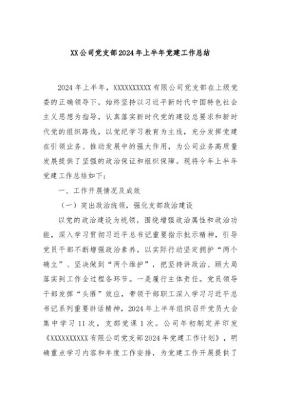 / 【七哥公文】2024年:XX公司党支部2024年上半年党建工作总结+更多免费公文+VX:QiGeGongWen2024