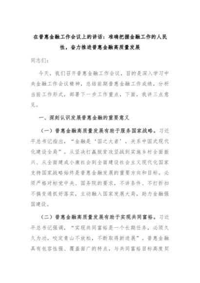 【七哥公文】2024年:在普惠金融工作会议上的讲话:准确把握金融工作的人民性,奋力推进普惠金融高质量发展+更多免费公文+VX:QiGeGongWen2024