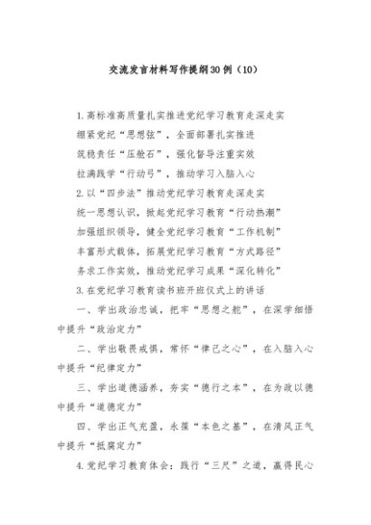/ 【七哥公文】2024年:交流发言材料写作提纲30例(10)+更多免费公文+VX:QiGeGongWen2024