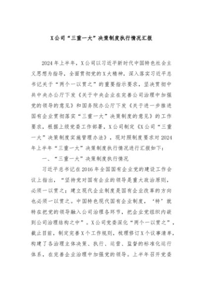 / 【七哥公文】2024年:X公司“三重一大”决策制度执行情况汇报+更多免费公文+VX:QiGeGongWen2024