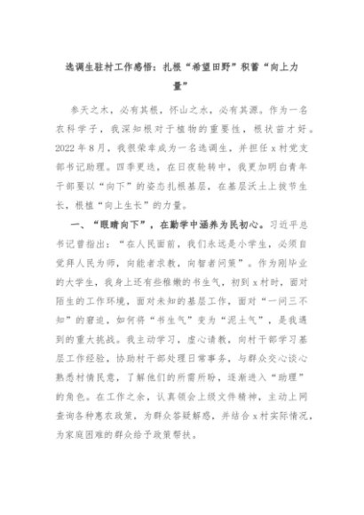 【七哥公文】2024年:选调生驻村工作感悟:扎根“希望田野”积蓄“向上力量”+更多免费公文+VX:QiGeGongWen2024