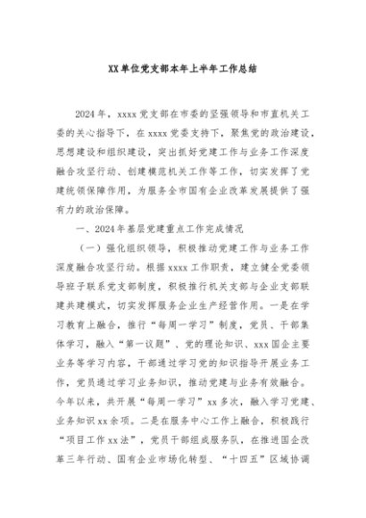 / 【七哥公文】2024年:XX单位党支部本年上半年工作总结+更多免费公文+VX:QiGeGongWen2024