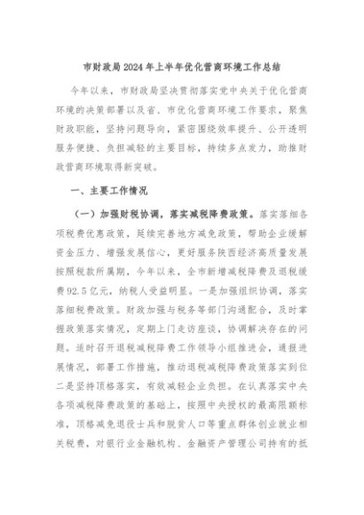/ 【七哥公文】2024年:市财政局2024年上半年优化营商环境工作总结+更多免费公文+VX:QiGeGongWen2024