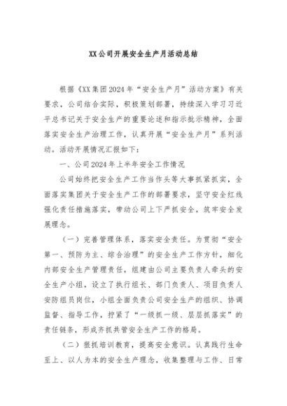 / 【七哥公文】2024年:XX公司开展安全生产月活动总结+更多免费公文+VX:QiGeGongWen2024