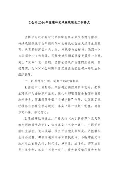 / 【七哥公文】2024年:XX公司2024年党建和党风廉政建设工作要点+更多免费公文+VX:QiGeGongWen2024