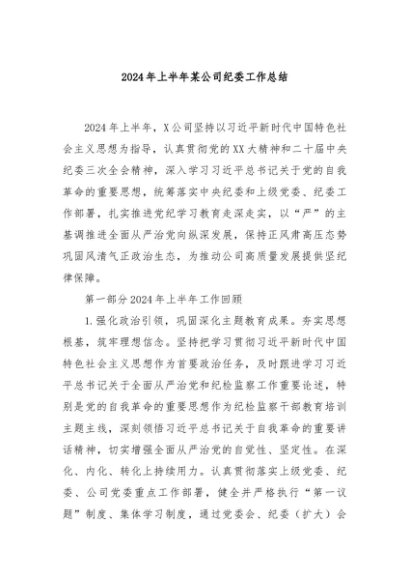 / 【七哥公文】2024年:2024年上半年某公司纪委工作总结+更多免费公文+VX:QiGeGongWen2024