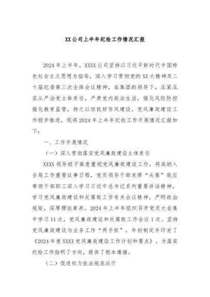 / 【七哥公文】2024年:XX公司上半年纪检工作情况汇报+更多免费公文+VX:QiGeGongWen2024