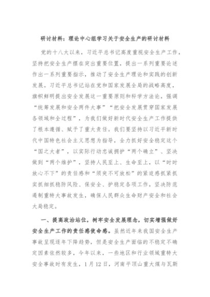 【七哥公文】2024年:研讨材料:理论中心组学习关于安全生产的研讨材料+更多免费公文+VX:QiGeGongWen2024
