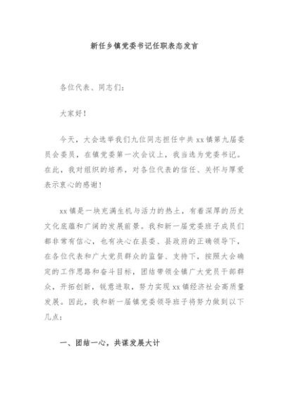 / 【七哥公文】2024年:新任乡镇党委书记任职表态发言+更多免费公文+VX:QiGeGongWen2024