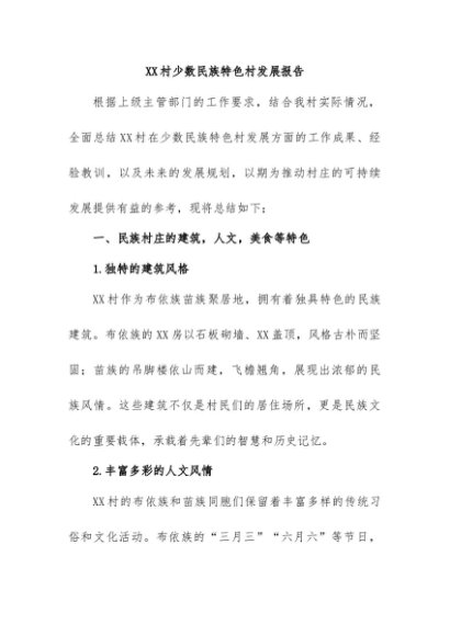 / 【七哥公文】2024年:XX 村少数民族特色村发展报告+更多免费公文+VX:QiGeGongWen2024