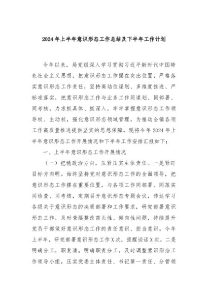 / 【七哥公文】2024年:2024年上半年意识形态工作总结及下半年工作计划+更多免费公文+VX:QiGeGongWen2024
