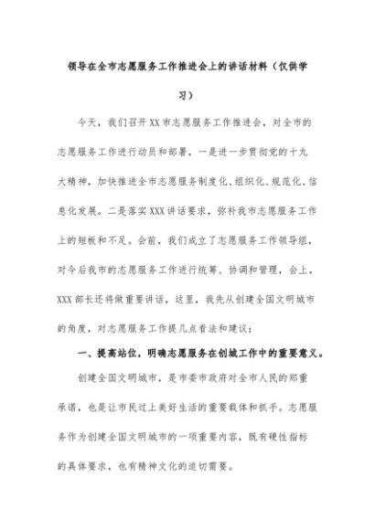 【七哥公文】2024年:领导在全市志愿服务工作推进会上的讲话材料(仅供学习)+更多免费公文+VX:QiGeGongWen2024