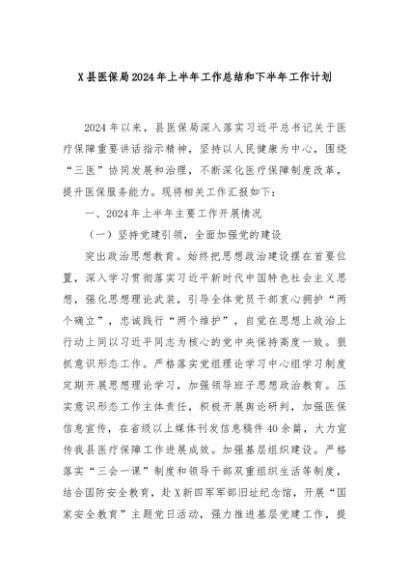 【七哥公文】2024年:X县医保局2024年上半年工作总结和下半年工作计划+更多免费公文+VX:QiGeGongWen2024