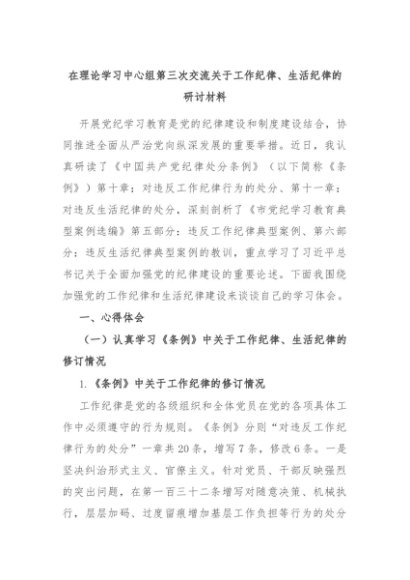 【七哥公文】2024年:在理论学习中心组第三次交流关于工作纪律、生活纪律的研讨材料+更多免费公文+VX:QiGeGongWen2024