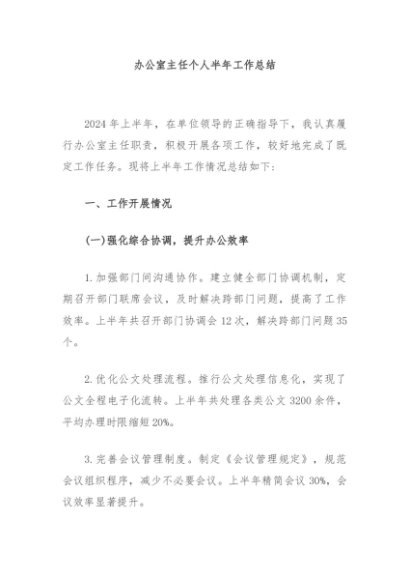 / 【七哥公文】2024年:办公室主任个人半年工作总结+更多免费公文+VX:QiGeGongWen2024