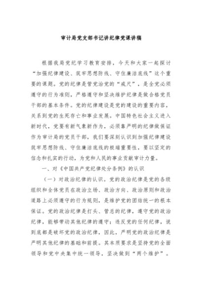 / 【七哥公文】2024年:审计局党支部书记讲纪律党课讲稿+更多免费公文+VX:QiGeGongWen2024
