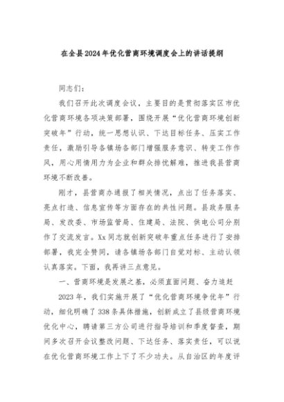 / 【七哥公文】2024年:在全县2024年优化营商环境调度会上的讲话提纲+更多免费公文+VX:QiGeGongWen2024