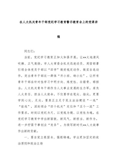 【七哥公文】2024年:在人大机关青年干部党纪学习教育警示教育会上的党课讲稿+更多免费公文+VX:QiGeGongWen2024