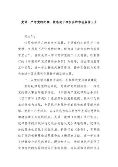 / 【七哥公文】2024年:党课:严守党的纪律,做忠诚干净担当的市场监管卫士+更多免费公文+VX:QiGeGongWen2024