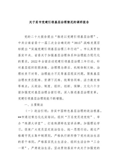 / 【七哥公文】2024年:关于某市党建引领基层治理情况的调研报告+更多免费公文+VX:QiGeGongWen2024